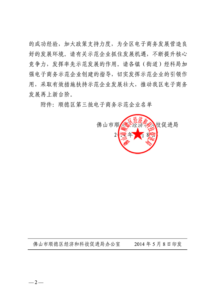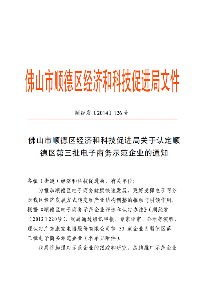 【佛山】佛山市顺德区经济和科技促进局关于认定顺德区第三批电子商务示范企业的通知
