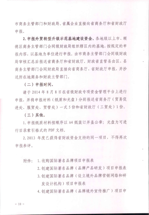 广东省商务厅广东省财政厅关于做好2014年省级扶持企业收购国际著名品牌及促进经贸转型升级专项资金申报工作的通知