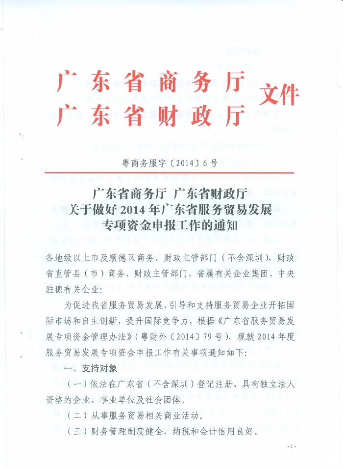 广东省商务厅 广东省财政厅关于做好2014年广东省服务贸易发展专项资金申报工作的通知